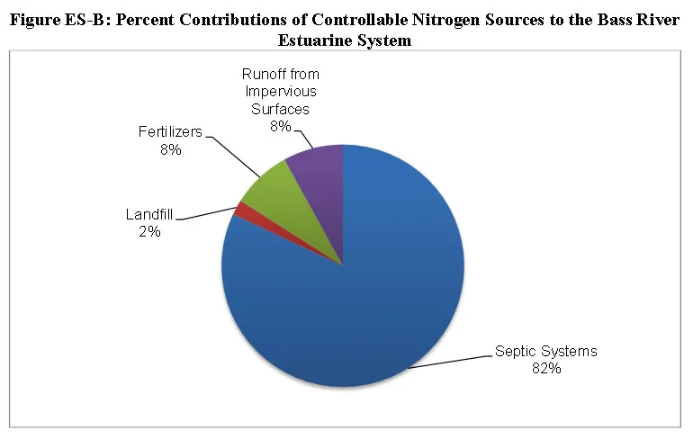 Some nitrogen is a natural part of the ecosystem. Our goal is to do something about the man-made sources of nitrogen - or controllable nitrogen. Here are some of the most common sources in Bass River: